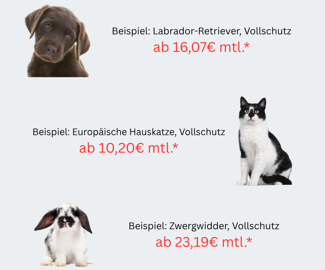 Die Preise variieren je nach Rasse, Alter und den Umfang des Versicherungsschutzes.